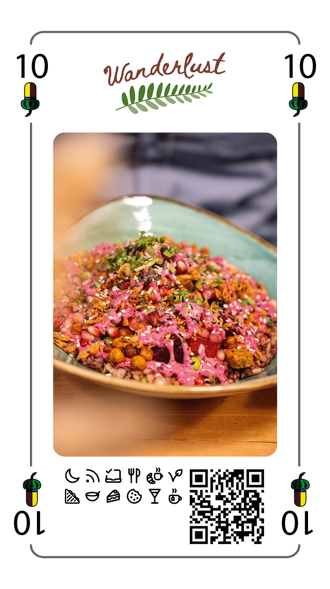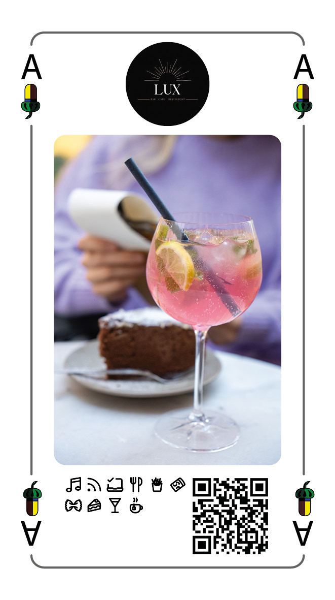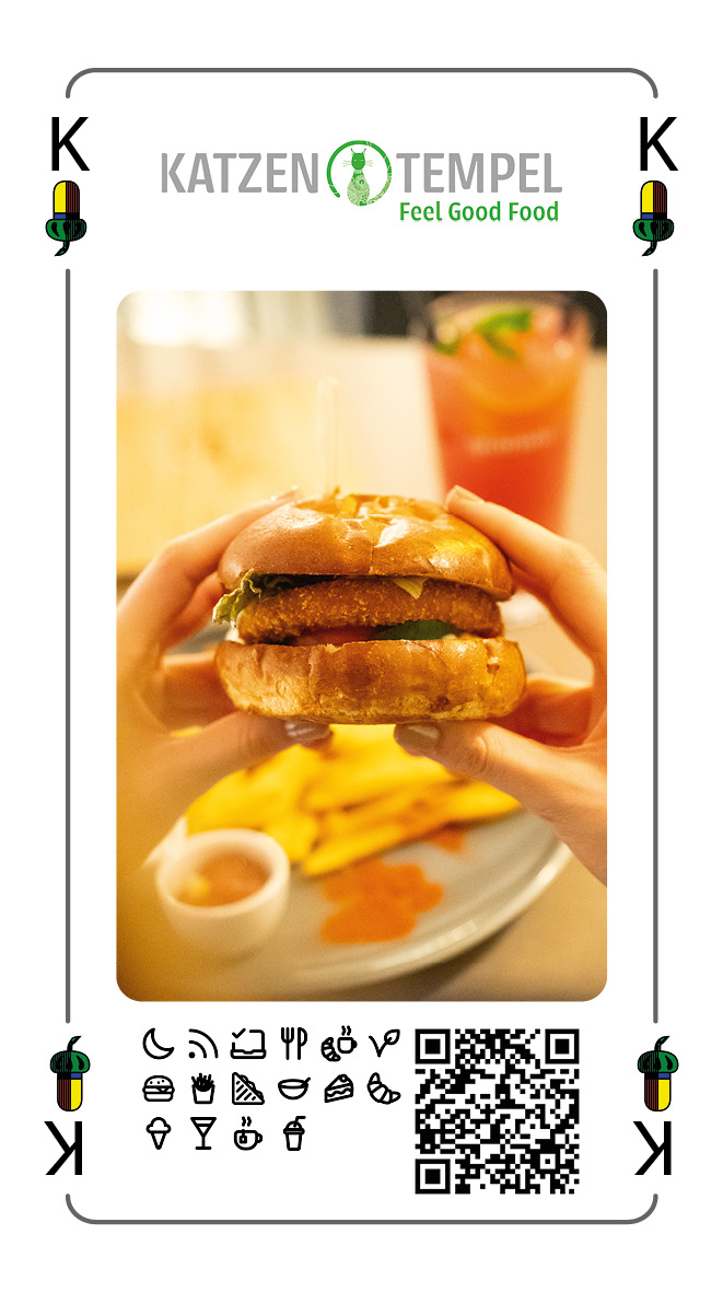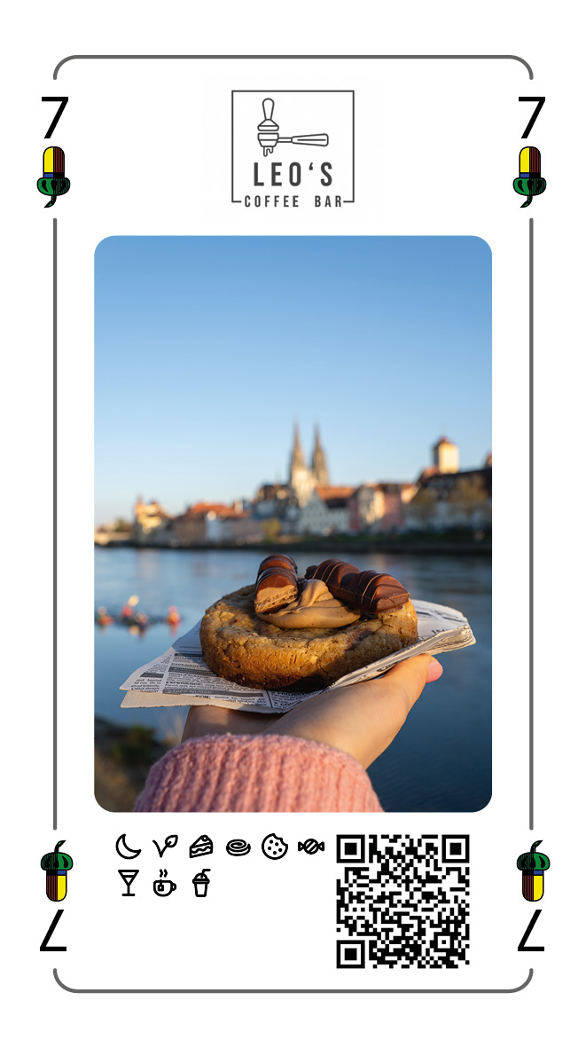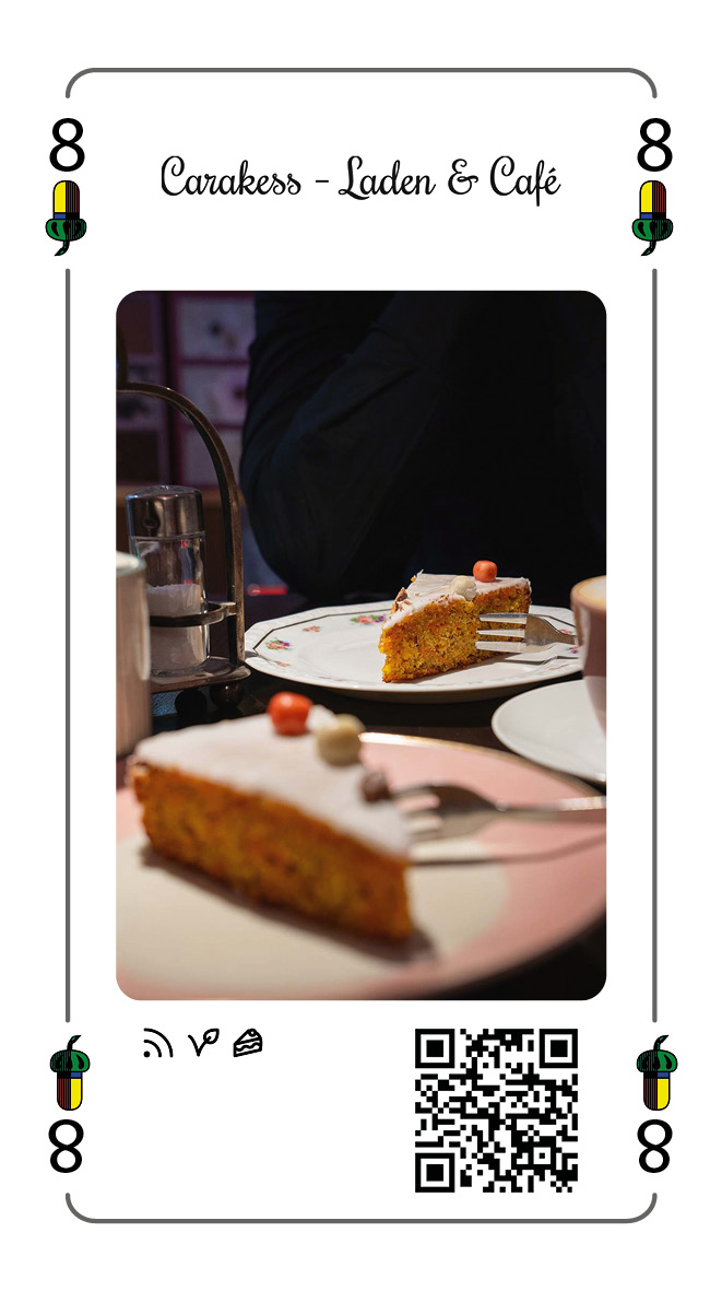 Neben dem Spielfaktor enthält unser Kartenspiel nützliche Infos über das jeweilige Café in Form von Icons. Natürlich darf auch der QR-Code zur jeweiligen Seite des Cafés auf unserem Blog nicht fehlen! Von hier aus findest du blitzschnell weitere hilfreiche Funktionen wie Links zur Speisekarte, Google Maps etc.